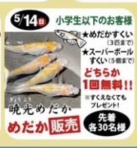 協賛イベントといたしまして、小学生以下のお客様は1回《めだかすくい》《スーパーボールすくい》を無料で参加いただけます。